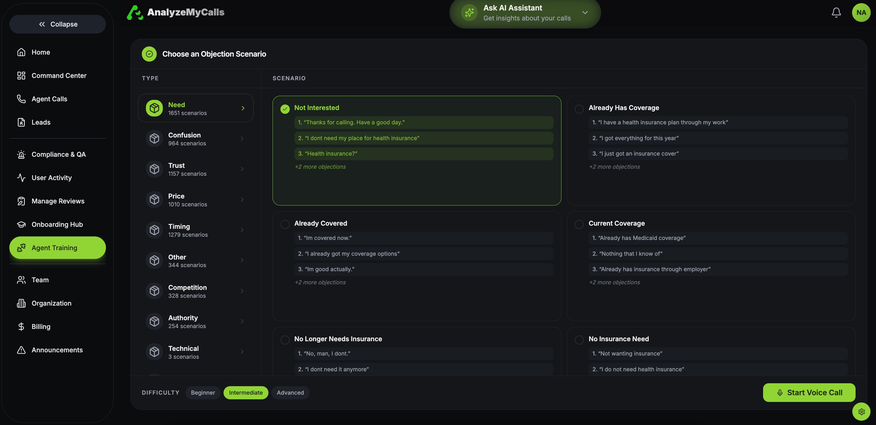 A new space for agent training where teams can explore objection scenarios, review real examples, and practice better responses, helping agents improve faster and more consistently.