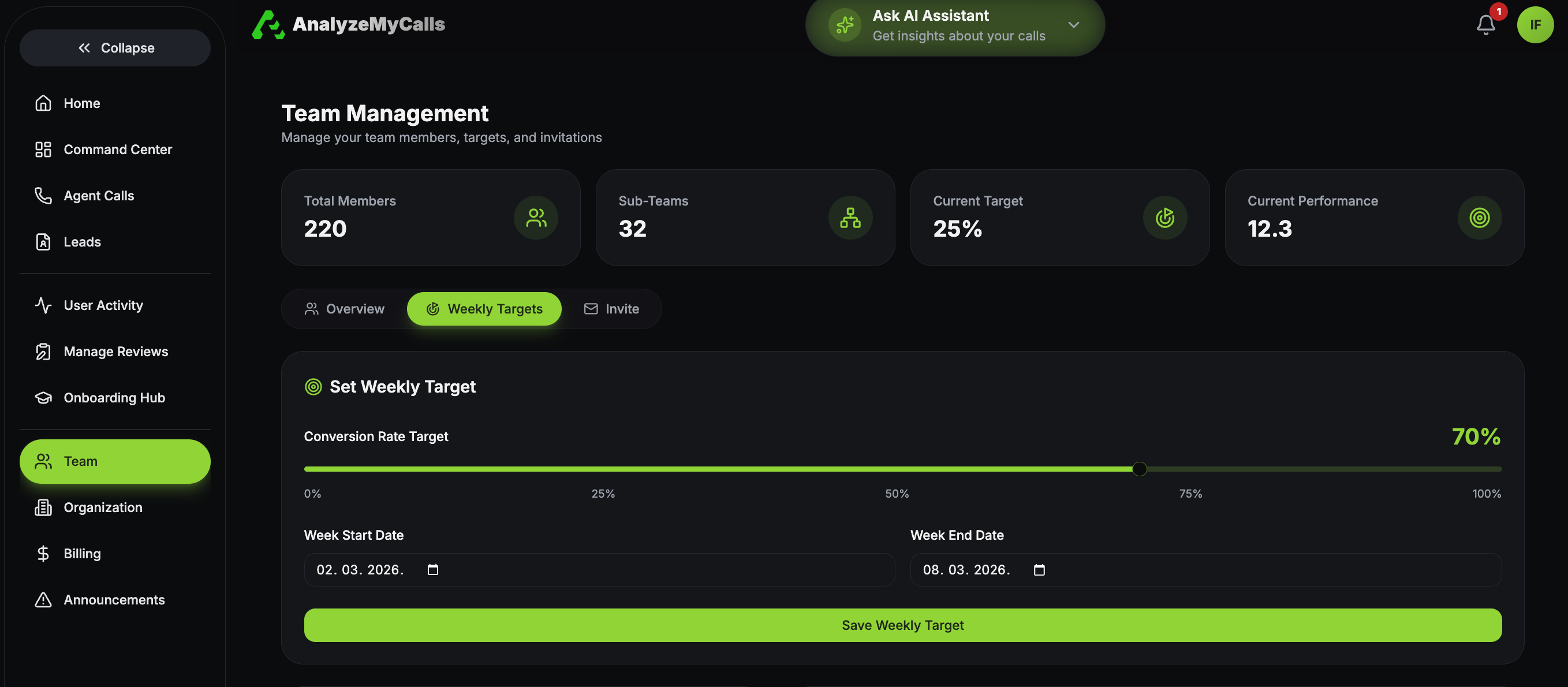 Set weekly appointment targets, create sub-teams, and send single or bulk invites with clearer oversight and control.